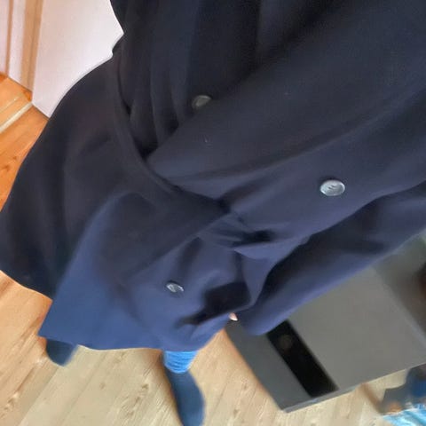 Lækker Boss uldfrakke str 56. Mørkeblå. Ældre model, der har hængt i skabet, men super flot. Måler ca 118 i længde (målt fra nakke), ærmelængde fra skulder 63. Generelt super flot stand med få brugsspor. Jeg har forsøgt at tage billeder indvendig hvor man kan se lidt ‘rander’ - ved ikke om de kan vaskes/renses væk.