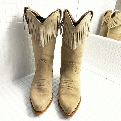 Flotte cowboy støvler brugt til Linedance. Trænger til at få ny bund på hælen , se foto. Men ellers fremstår de som næsten nye