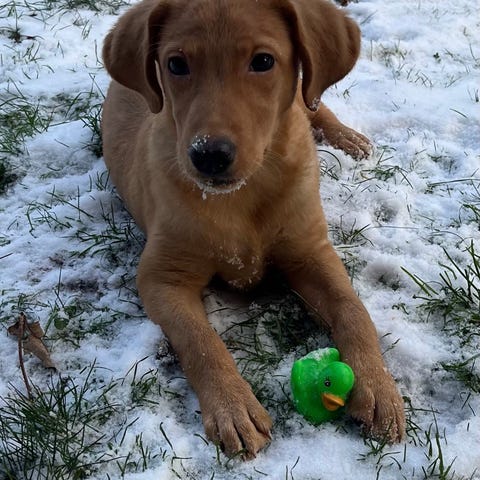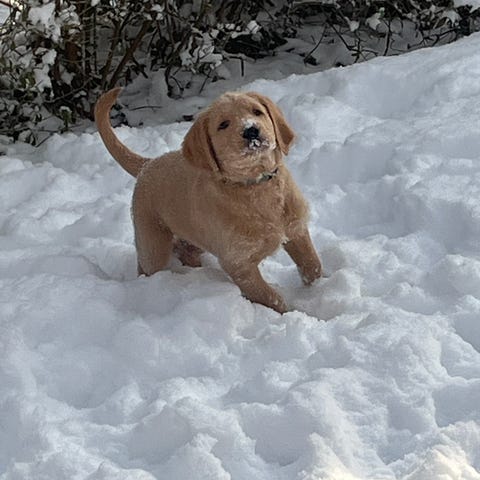 Dexter er labradoodle ligesom sine søskende, men har udseendemæssig taget mest fra labradoren.