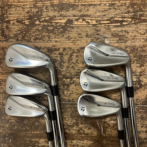 Super lækkert jernsæt. G-P-9-8-7-6 i p770 modellen og 5 jernet i p790 modellen. Dg mid 115 stiff skafter. Har spillet en sæson så nyeste model fra taylormade. Super stand, men er selvfølgelig brugt. Kan sendes