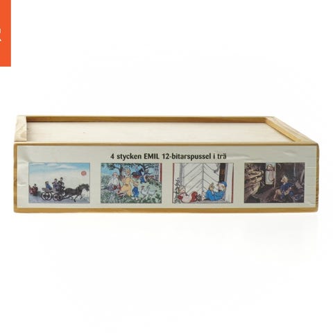 Dette er et træpuslespil med 80 brikker, velegnet til børn fra 4 år og opefter. Motivet viser en livlig landsby med mennesker, dyr og landskabsdetaljer. Puslespillet leveres i en blå kassetteæske, der også tjener som opbevaring. Æsken måler 420x370x3 mm. Det er produceret af firmaet Kärnan.