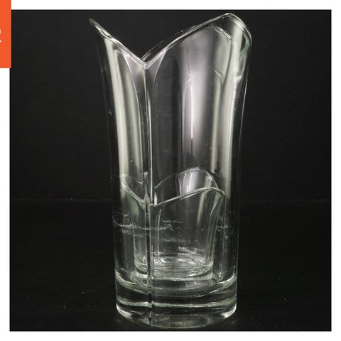Vasen er lavet af klart glas og har en høj, slank form med en bred åbning. Den er velegnet til lange blomsterstængler eller dekorative grene. Undersiden af vasen har en etiket med en stregkode og nummeret 13750. Størrelsen er 40x12 cm.