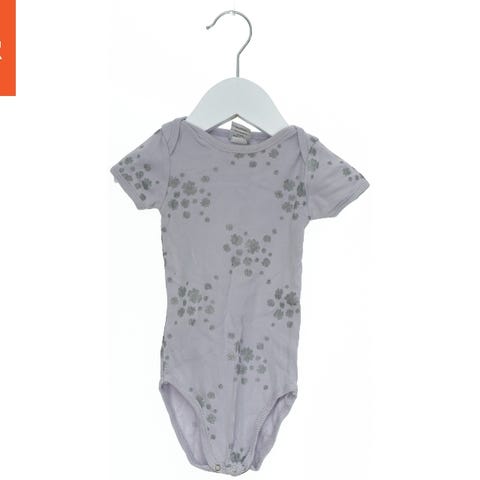 Kortærmet bodystocking i mørkeblå farve. Den har knapper ved skuldrene for nem åbning og lukning. Bodystockingen har tre trykknapper ved bunden for nem fastgørelse. Materialet ser ud til at være blødt og behageligt.