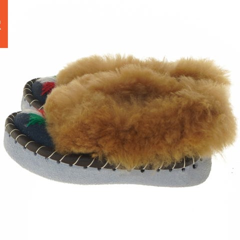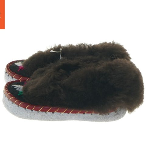 Disse er et par varme og behagelige børnesutsko lavet med blød pels og en let stofsål. Perfekt til brug indendørs eller på kolde vinterdage. Skoene i størrelse 24 har en flossig overdel og synlige sømme langs kanten. De har farvestrålende detaljer med grøn, rød og hvid. Let og komfortabel for små fødder.