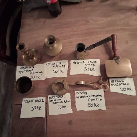 Messing, brevsprække, nøgleskilt og dørhåndtag