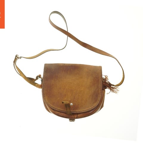 Denne lille skuldertaske er lavet af brunt læder og har et rektangulært design med målene 22x15,5 cm. Tasken har en justerbar rem, som gør det muligt at bære den over skulderen. Forsiden af tasken er udstyret med en flap, der lukkes med en dekorativ spænde, mens bagsiden har en lynlåslomme til opbevaring af små ting. Tasken har mærket 'EXIT' præget på forsiden, hvilket tilføjer et unikt præg til designet. Tasken er ideel til let opbevaring og kan bruges til både hverdag og specielle lejligheder.
