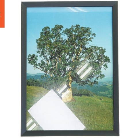 Denne genstand er et billede af et træ, der står på en mark under en klar blå himmel. Billedet er indrammet i en sort ramme. Bagpå ses en opklæbet etiket fra Posterland samt kroge til ophængning. Billedets størrelse er 30x42 cm.