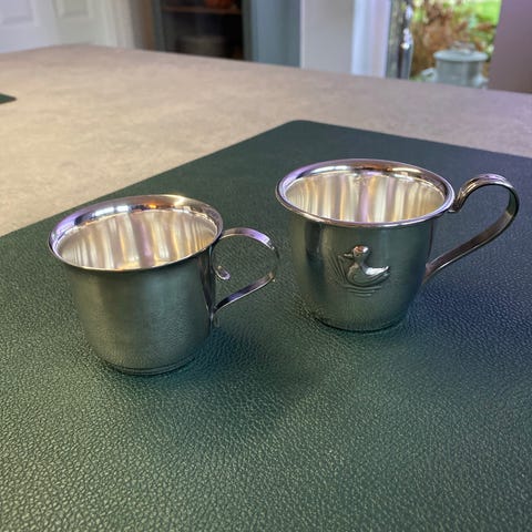 Børnekop Sølv med and på siden (str. Ø 7 cm)