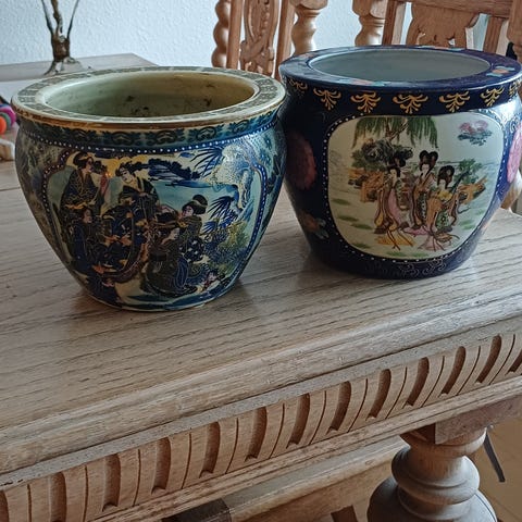 Kinesisk porcelæn urtepotte (str. Ø 14 cm)
