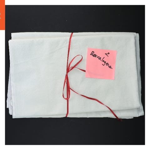 Dette er et sæt bestående af to hvide lagner beregnet til en babylift. Størrelsen på hvert lagen er 105x60 cm.