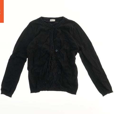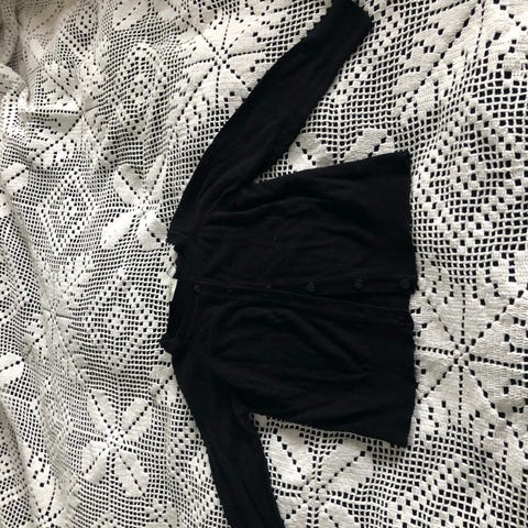 Cardigan til piger i en blød lilla stof med flæsedetaljer på kraven og knappelukning foran. Langærmet og velegnet til at holde varmen i køligere vejr.