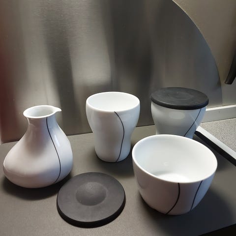 Udgået menu krus med guld designet af Pernille vea. Uden hank.