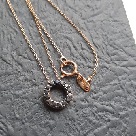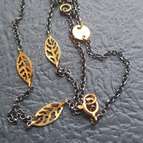 Sm6k og feminin halskæde udført i oxyderet Sterlingsølv med smukke forgyldte detaljer samt perle.