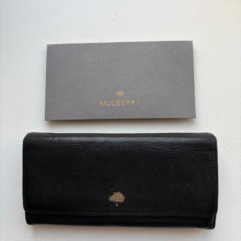 Mulberry pung i læder til unisex. Pungen er fremstillet i sort læder med krokodillepræg og har flere rum til opbevaring af kort og mønter. Den lukkes med lynlås for sikker opbevaring.
