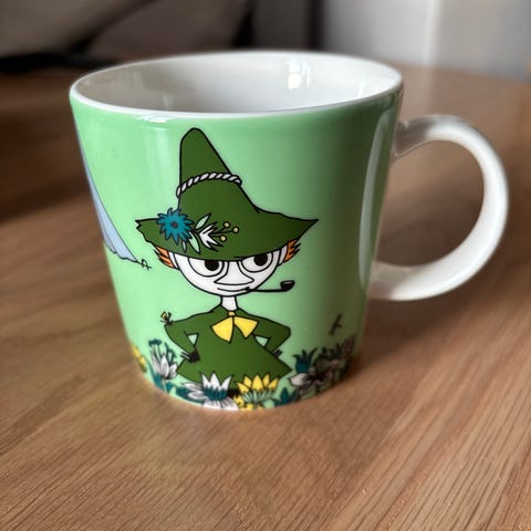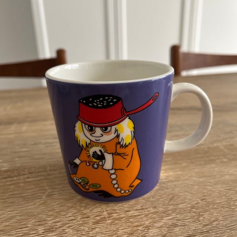 Arabia Little My krus med motiv af figuren Little My fra Mumitroldene. Kruset er lavet i porcelæn og har en hvid base med farverige detaljer. Velegnet til servering af varme drikke.
