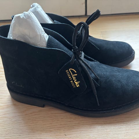Et par Bordeaux Clarks ørkenstøvler i størrelse 41. Støvlerne er lavet af læder og har en rågummi sål. De har en enkel snøring foran og en klassisk form som kan bruges til både casual og mere formelle lejligheder. Læderet ser ud til at være af god kvalitet, og sålen er holdbar.