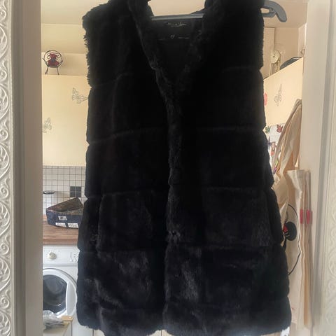 Vendbar Ruskind Vest i brun farve til kvinder i størrelse M. Vesten er lavet af skind og har et klassisk design uden ærmer, egnet til lag-på-lag brug i køligere vejr.Kraven kan knappes af