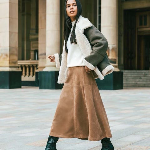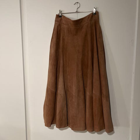Nederdelen er fremstillet i ruskindsmateriale og har en lynlåslukning bagpå. Designet er enkelt med en let A-formet pasform.