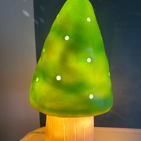 Spesiell lampe lavet af en smed/ hjemmelavet?? virkelig spesiell, ligner noget fra 40 - 50 tallet. Den er 25 cm høj og diameter på skærm er 19 cm. Virker fint med trykknap på foden.