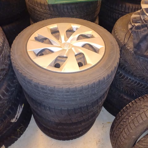 4 stål dæk med vinterdæk, 2 stk slidt ned, 2 stk næsten nye. Med originale Toyota kapsler