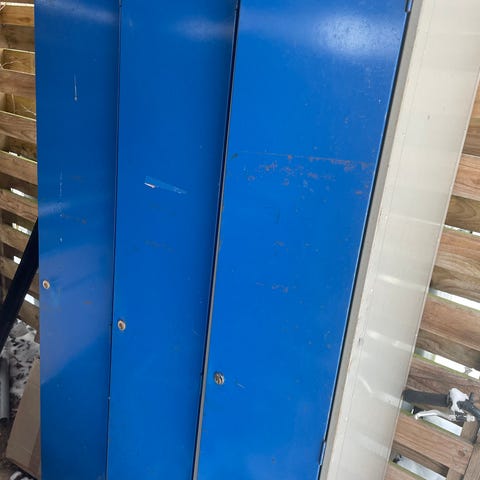 Smukke skabe i mærkt finer. Meget velholdte og flotte. 3 høje på 180x80cm og 1 lav på 60x80 cm.