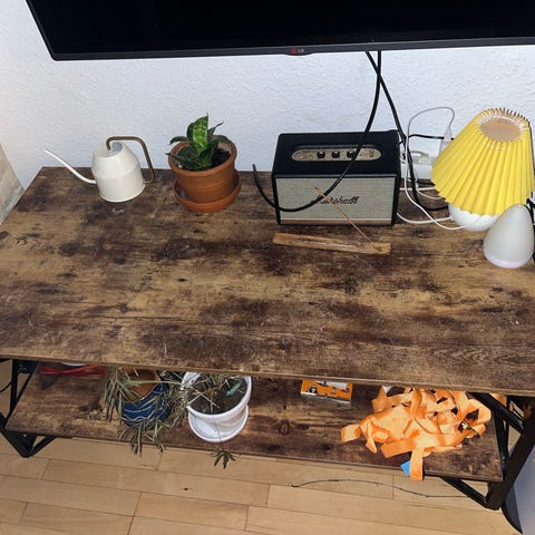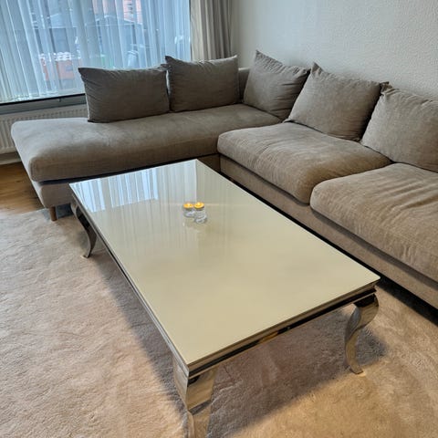 Perfekt til en hjørnesofa. Med en kærlighånd er dette bord så god som ny.