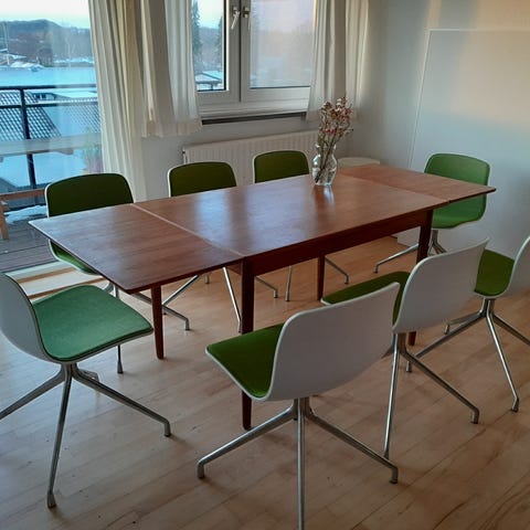 Teak Spisebord med hollandsk udtræk & 8 Hay acc11 stole