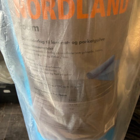Uåbnet - Foam 50+ gulvunderlag til laminat- og parketgulve. Tykkelse 2,0 mm og samlet areal 15 m². Mål pr. rulle er ca. 0,2 x 100 x 1500 cm. Densitet 50 kg/m³. Blåt skumunderlag med indbygget fugtspærre, egnet som underlag under flydende gulvkonstruktioner.