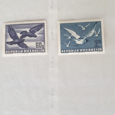 AFA nr. 2×860, 2×816 samt 864–868 (femstribe med fugle).