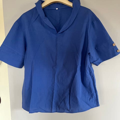 Blå bluse bomuld og polyester. Aldrig brugt da fejlkøb