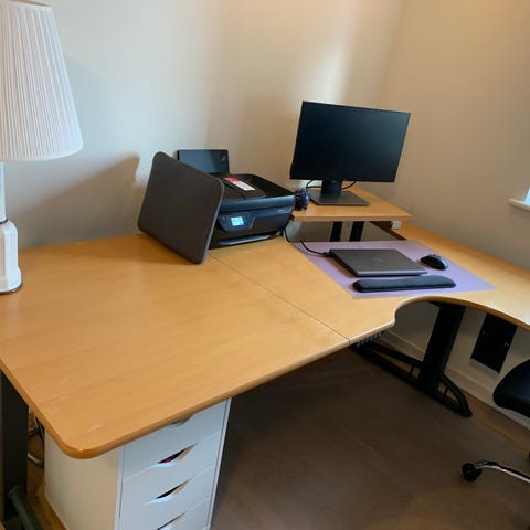 Tegnebord med tegnemaskine og lys i pladen. Kan hæves og sænkes fra 95cm-120cm og skråstilles. Pænt design og fylder ikke meget. Tungt og gedigent. Fungerer fint.