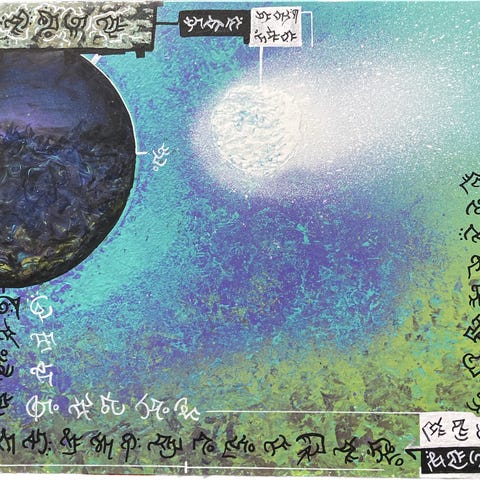 1 in existence original kunst 37cm x 34cm Exolinguistik i Kunst