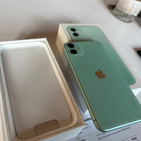 Apple iPhone 11 smartphone med 128 GB lagerplads. Enheden har en grøn farve og er designet til personlig brug.har aldrig været skadet eller tabt sender gerne