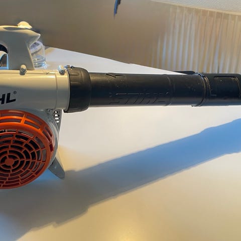 Stihl SH 86 C blæser med orange og sort farve. Maskinen er egnet til havearbejde og udendørs oprydning.
