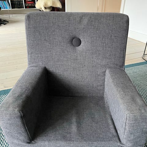 Vores flotte KlipKlap børne lænestol i farven Mustard er til salg. Har været brugt få gange til vores barnebarn.