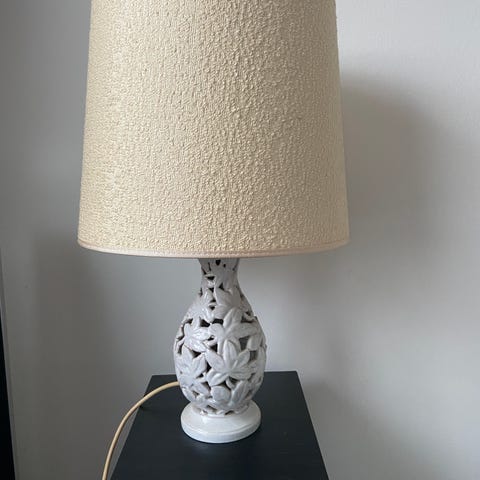 Super smukke keramiklamper med gennembrudt mønster /bladdekor og fin hvid / råhvid glasering glasur.