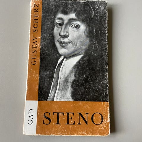 Niels Stensen. Anatom, Geolog og Biskop, Karen Plovgaard, genre: biografi, Pæn hæftet biografi , udgivet af Pauluskredsen, omslag af Svend Ott S, 1953, 160 sider.