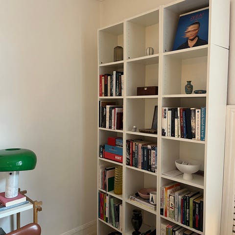 BILLY reolsystem fra IKEA i egetræsmønster.