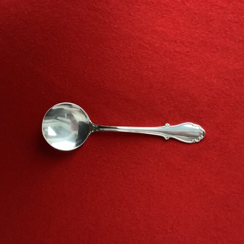 Serveringsske/kompotske til søde, bløde retter i tretårnet sølv fra sølvsmeden Johannes. H. Paulsen, København. Produceret i perioden 1957-1976 og stemplet Joh.H.P. samt bystemplet for København (3 tårne). Skeen måler 14,5 cm.