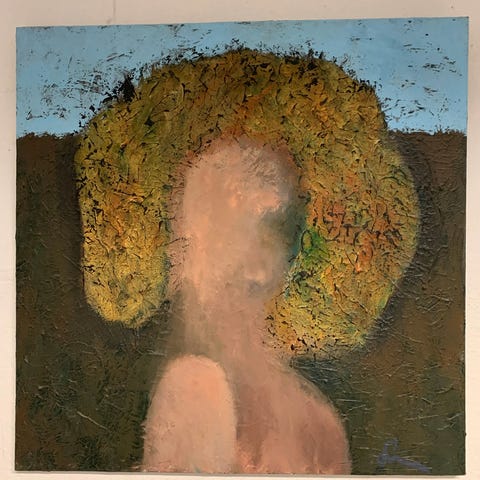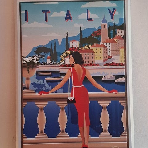 Eksklusivt, smukt og stemningsfuldt retro maleri, i stor stoerelse ( 75/95 ) cm.