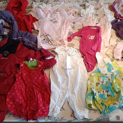 Der er en flyverdragt, en vinterjakke, bodystokke, kjoler, bukser, strømpebukser, trøjer, hatte og cardigans.