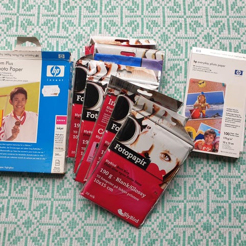 HP blækpatroner 364 samt fotopapir 10 x 15 cm medfølger.