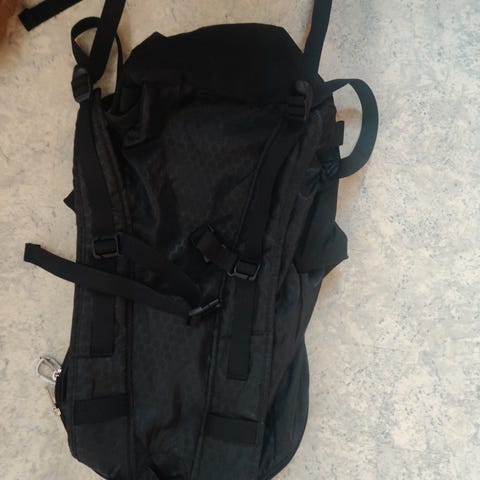 Prisvindende løberygsæk + waist add-on fra Kilometer Studios i nærmest helt ny stand. Brugt 4 gange.