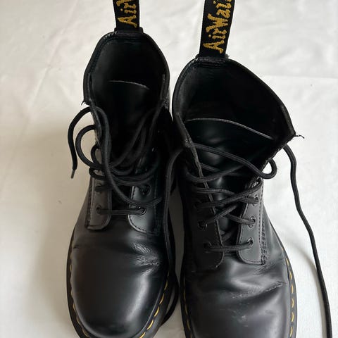Dr. Martens støvler i størrelse 40, sorte i farven. Støvlerne er lavet i lædermateriale og har snørelukning. Velegnede til både hverdag og mere robust brug.