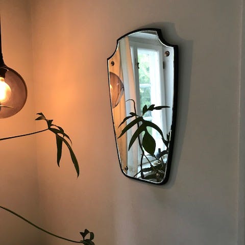 Smukt spejl med messing detaljer i art deco stil