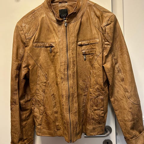 CKN Læderjakke i sort farve, størrelse M, kategoriseret som andre jakker til kvinder. Fremstillet i lædermateriale.