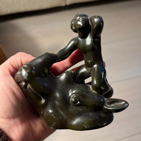 Just Andersen drenge figur forestillende et siddende barn med en konkylie