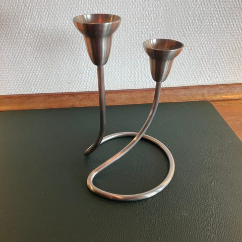 Georg Jensen lysestage i sølv til 2 lys. Designet til at holde to stearinlys, fremstillet i sølvmateriale. 22 og 18 cm høj v lysene.