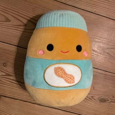 Squishmallows bamse i lilla og beige farver. Blød og krammevenlig, velegnet som legetøj eller pyntegenstand. Har kun ligget til pynt, helt som ny. 21cm høj.