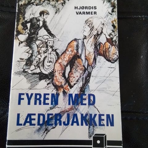Fyren med læderjakken, Hjørdis Varmer, Pæn, lelæst børnebog, udgivet på Aschehougs Forlag ( Domino-bog ), 1978, 86 sider.